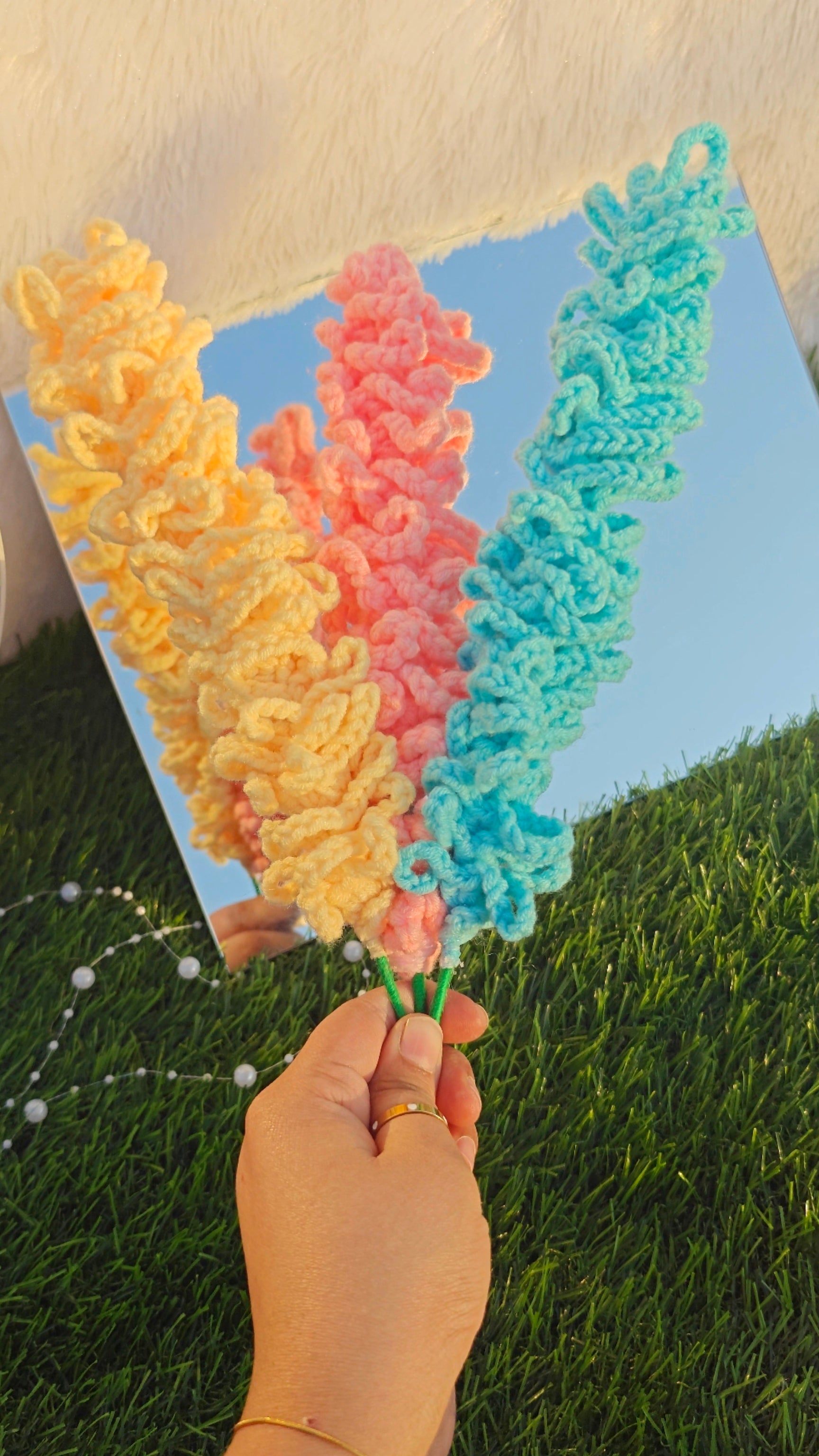 •  Each flower is 100% knitted by hand using premium crochet, making them long-lasting and lifelike.